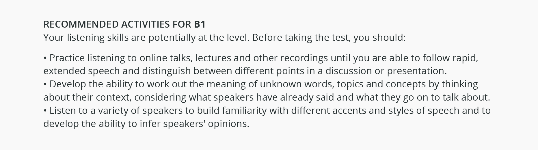 Vedrai quali attività puoi svolgere per portare ogni abilità linguistica al livello richiesto per l'esame.