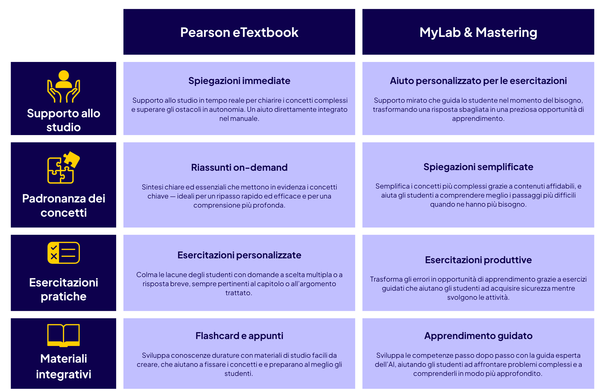 Scopri l’efficacia di un’esperienza di apprendimento interconnessa grazie agli strumenti di AI che trovi integrati in MyLab, Mastering e Pearson eTextbook.